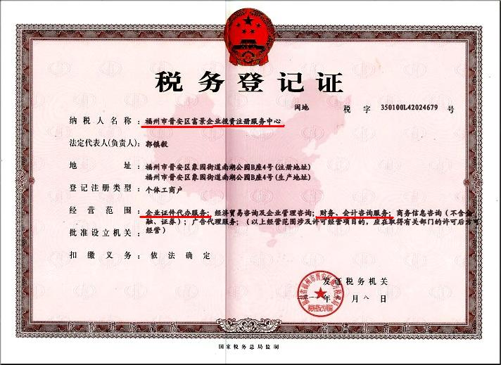 福州市 富景﹝台商﹞企業投資註冊﹝工商辦證﹞服務中心